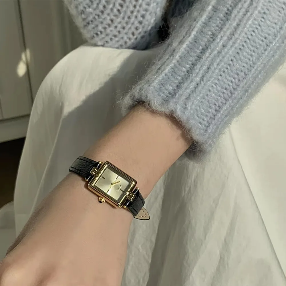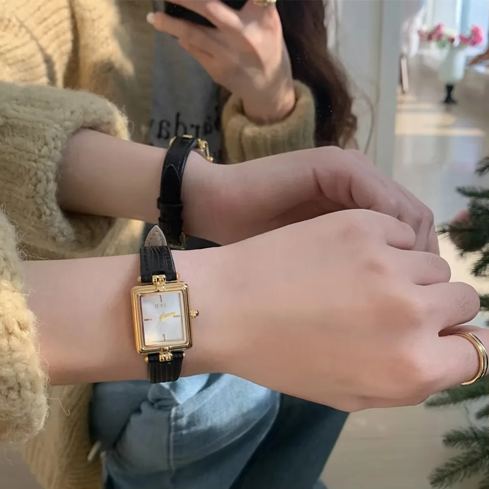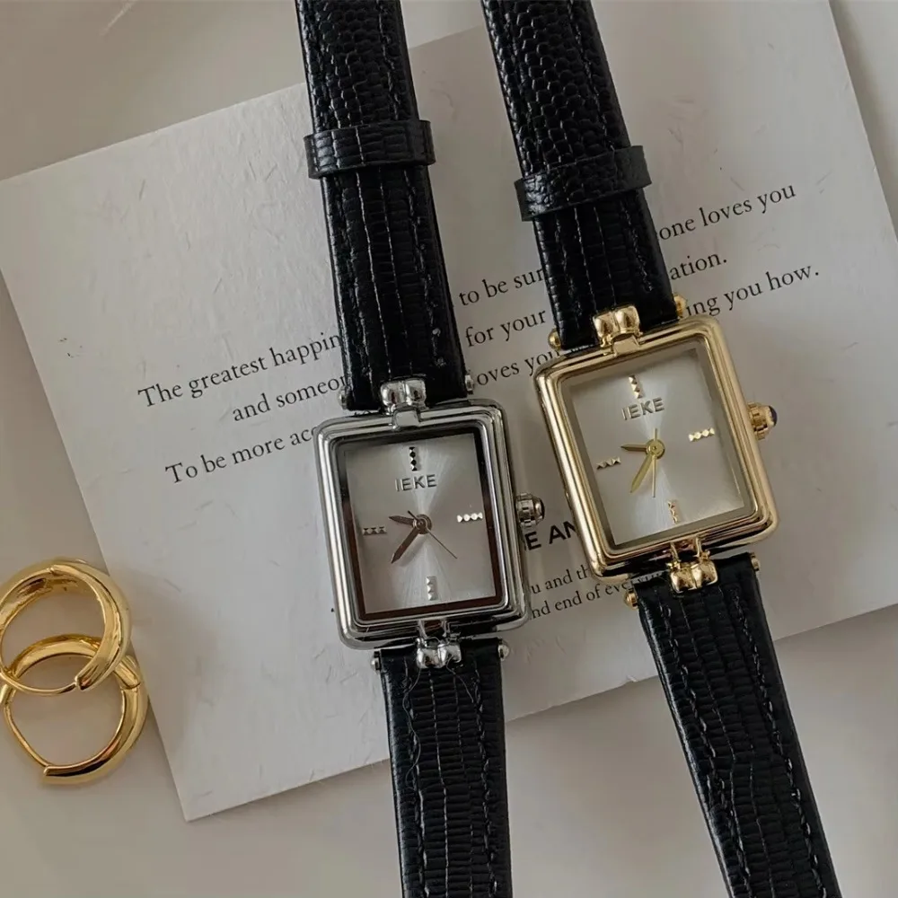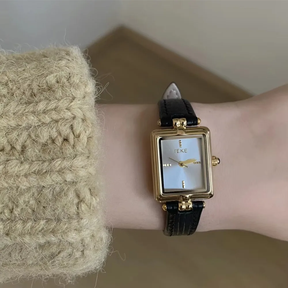 IEKE INS High-end Luxury Retro Medieval Square Watch for Women Niche Design Quartz Ladies Genuine Leather lady Watch Logo Custom